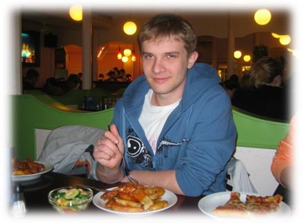 После матчей мы еще немного пообщались с прессой, и двинулись в сторону центра. В скором времени мы нашли приятный ресторан - столовую в стиле нашей Му-Му. Там всего за 79 крон (400 рублей) можно было неограниченное количество раз поесть всего чего захочешь. Ну и естесственно отметили пивом победу. После ужина мы купили продуктов в супермаркете, и направились в отель. Истван решил провести вечер с нами, отметить, так сказать. Отмечали до утра в нашем номере ). Истван остался у нас. На следующий день мы запланировали экскурсии по городу и покупку сувениров.