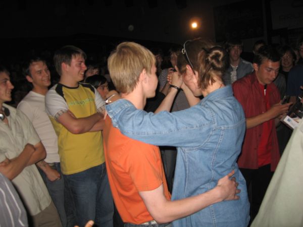 Ожидая розыгрыша компьютера, зрители стали подходить к Брюсу и требовать призов. Это они зря... В итоге, одному парню пришлось долго отжиматься, петь и танцевать, чтобы получить что-то типа футболки. Другому повезло больше - ему довелось повальсировать с самой Ayumi, которая приехала из Москвы специально на ивент. В общем, народ без конца требовал подарков, ну это и понятно - ведь пол сцены было завалено разными призами. Однако большая часть из них дожидалась игроков.